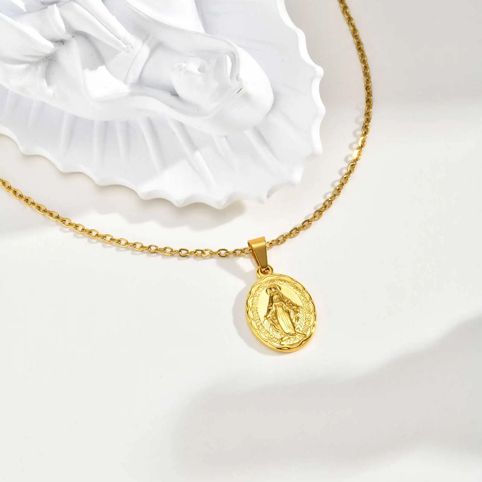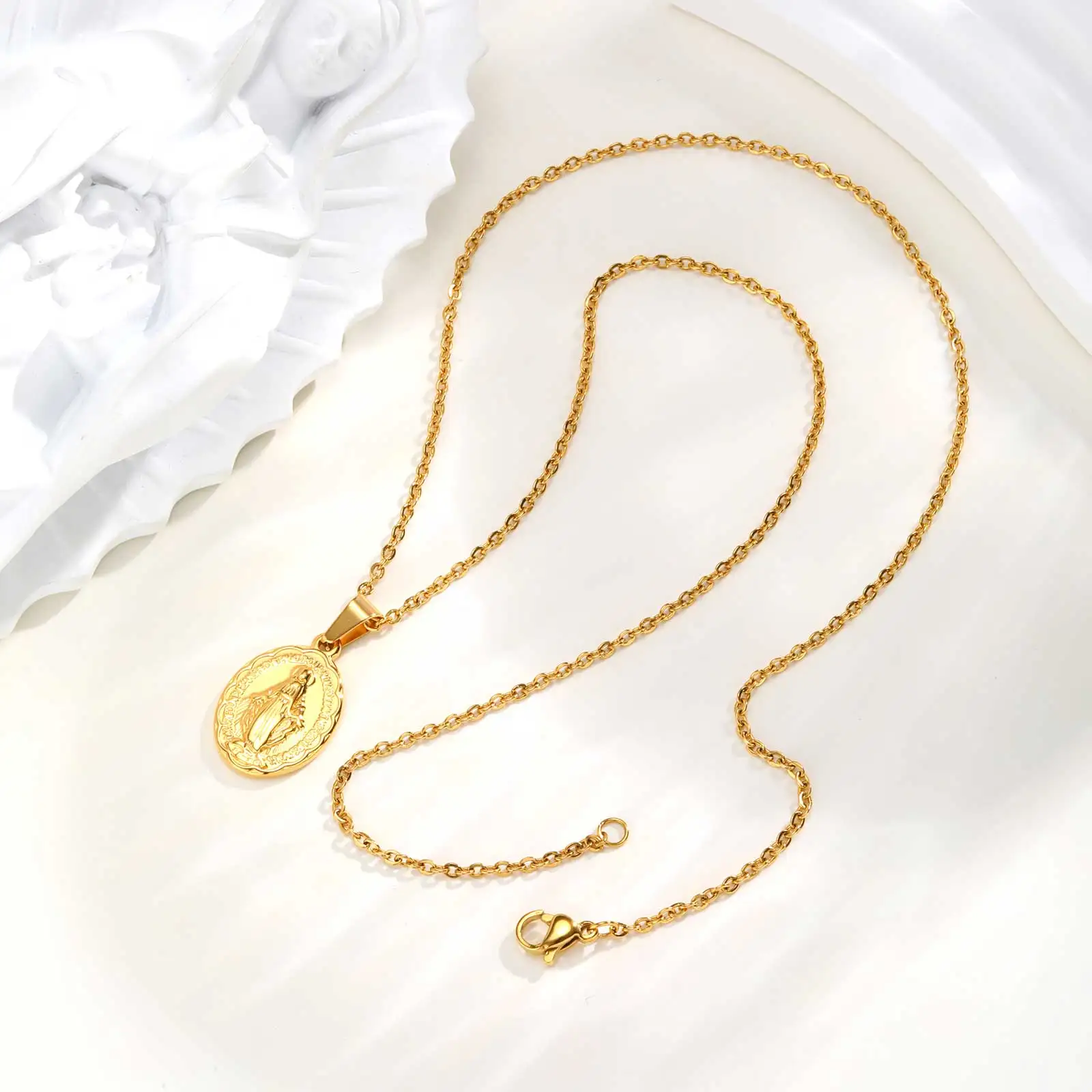 18K Gold Plated Virgin Mary Pendant Necklace For Women Stainless Steel Chain Choker Necklaces Religious Pray Jewelry Gift